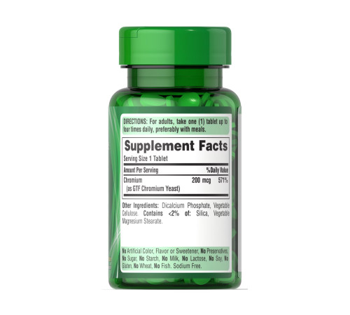 GTF (фактор толерантності до глюкози) Хром отримують із спеціально вирощених дріжджових клітин. Puritan's Pride GTF Chromium добре засвоюється та містить 100% чисті фактори GTF Chromium.