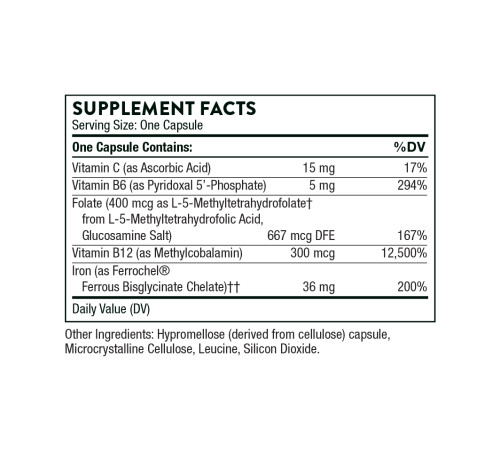 Дефіцит заліза може виражатися в частій слабкості, стомлюваності, нестачі повітря під час дихання, запамороченні, дзвоні у вухах, мерехтінні в очах, сонливості, дратівливості, порушеннях менструального циклу, втраті статевого потягу. При дефіциті або хронічній нестачі заліза в організмі, а також нездатності його засвоювати рекомендується приймати залізовмісні препарати, які підвищують рівень гемоглобіну в крові (наприклад, Ferrasorb). Дослідження показують, що поєднання заліза з важливими вітамінами, як-от вітаміни B та C, робить препарат кориснішим, ніж при роздільному споживанні цих поживних речовин. Ferrasorb поєднує активні форми вітамінів B6 (піридоксаль-5'-фосфат), B12 (метилкобаламін) і фолату (L-5-метілтетрагідрофолат) з легкозасвоюваним бісгліцинатом заліза. Вони роблять цей препарат чудовою кровотворною добавкою. Вітамін C підвищує засвоюваність заліза.