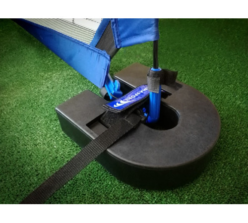 Установка надзвичайно проста: обважнювачі кріпляться на нижні кути воріт і не вимагають додаткових інструментів. Завдяки універсальній формі та оптимальній вазі вони сумісні з більшістю моделей воріт, у яких діаметр або ширина стійки не перевищує 5 см. Після встановлення ворота залишаються на місці протягом усього тренування, знижуючи потребу у постійній корекції їх положення.