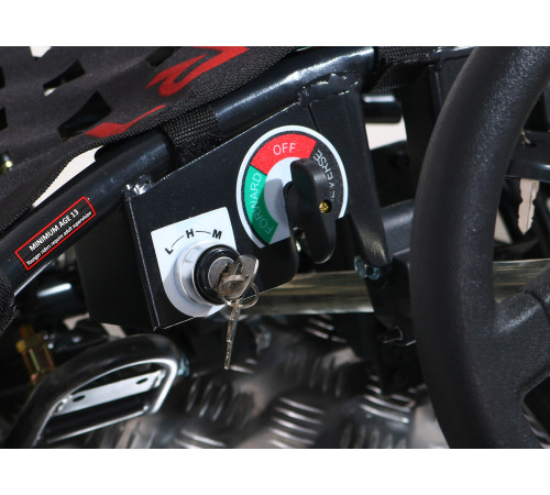 Керування картингом Fast Dragon буде повним комфорту завдяки спортивному сидінню спеціального профілю. Для безпеки сидіння має ремені та вбудовану форму з боків, а для зручності його положення можна регулювати.