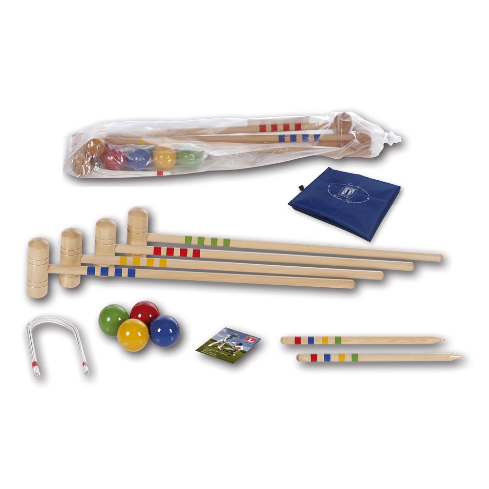 Набір для 4 гравців ідеально підходить як для гри з сім'єю в саду, так і для прогулянок на природі з друзями. Якісний крокет виробництва Італії.