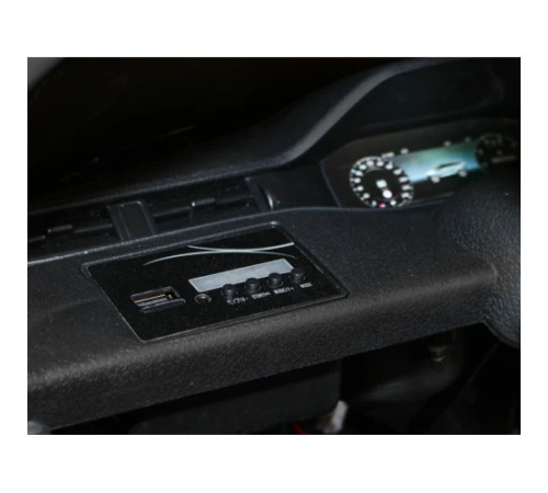 Електромобіль стане улюбленою іграшкою дітей ще й завдяки музичній панелі . Там знаходяться найпопулярніші входи USB , MP3 , SD і AUX . На кермі є кнопки з попередньо завантаженими піснями та клаксон . Передні та задні світлодіодні ліхтарі також красиво виглядають в автомобілі .