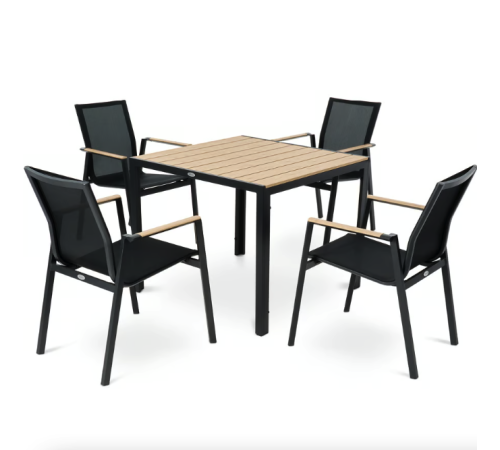 Чотиримісний комплект садових меблів Cremo від Di Volio дозволить вам створити комфортний і стильний простір для відпочинку і обіду на свіжому повітрі. Набір складається з квадратного столу з дерев'яною стільницею і чотирьох стільців з практичними підлокітниками.
