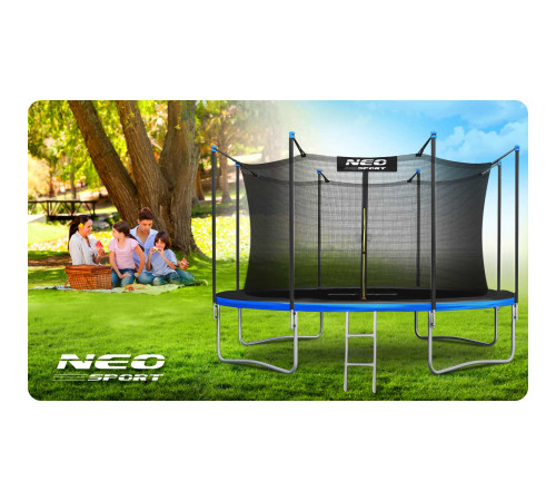 Батут Neo-Sport з внутрішньою сіткою 12 футів 374 см чорно-синій