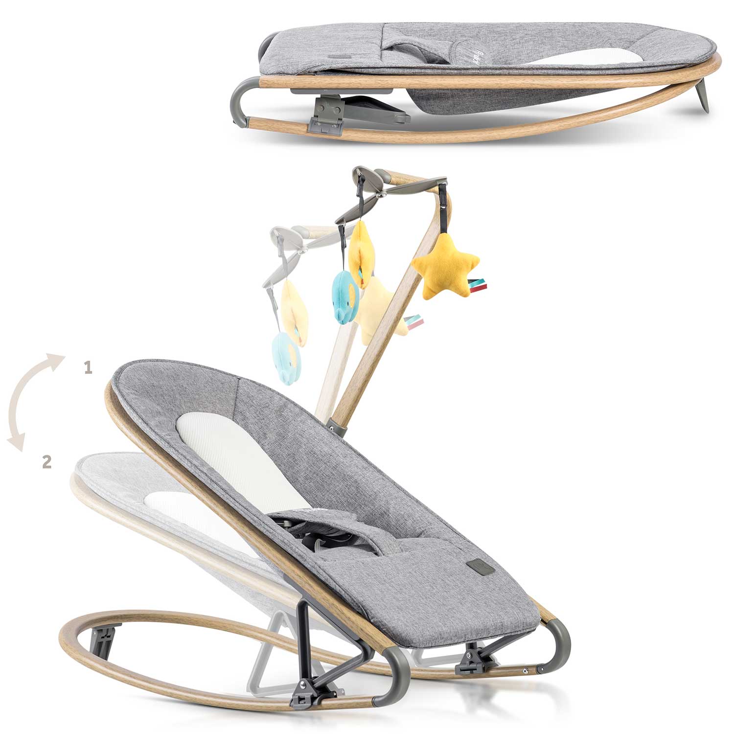 Крісло-гойдалка для немовлят Nukido 2в1 з іграшками, 74 х 40,5 х 47 см - сіра