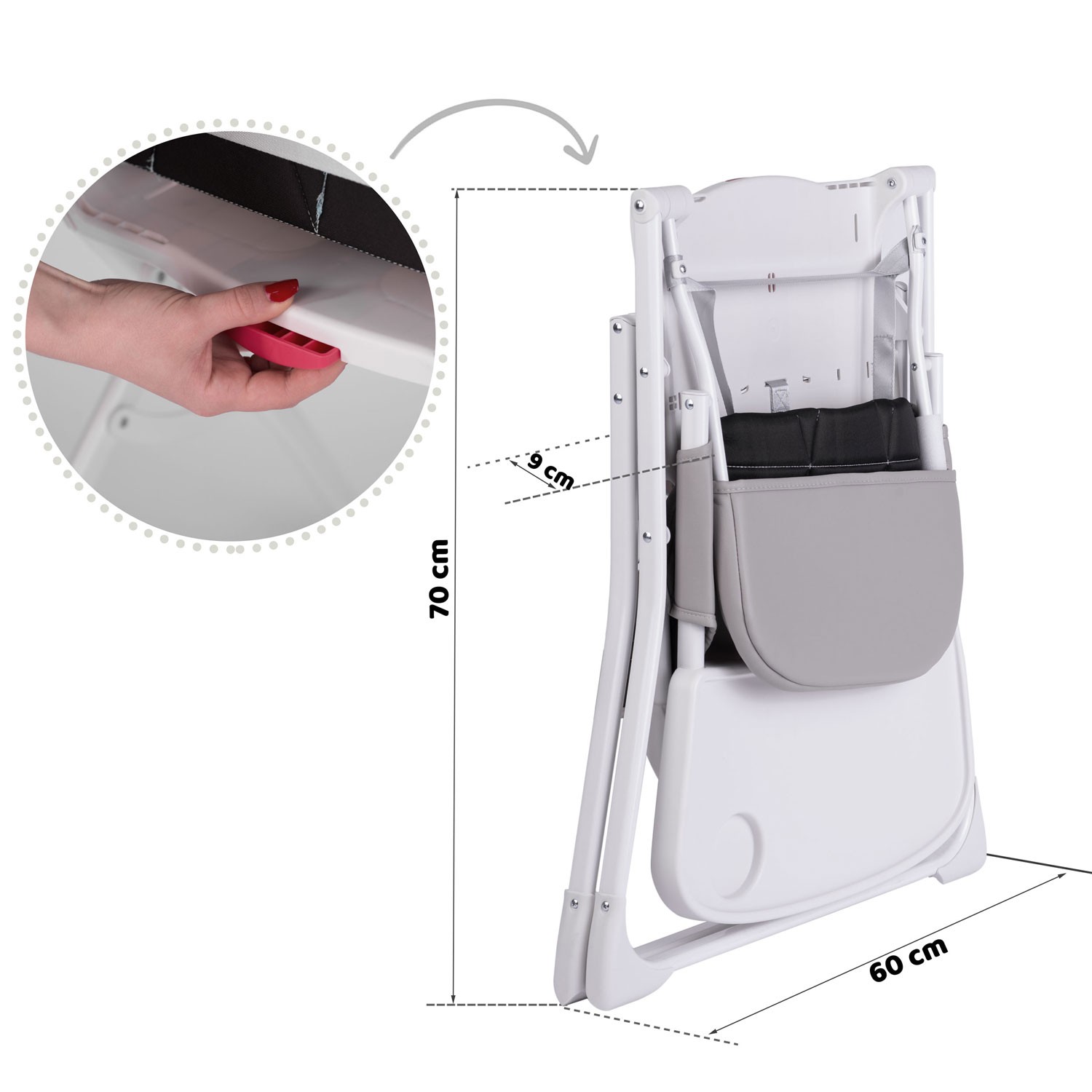 Підняті краї підноса запобігають зісковзуванню їжі або напоїв. До таці додається фігурний підсклянник. Стілець для будь-якого інтер'єру. Стілець складається до компактного розміру одним натисканням кнопки!