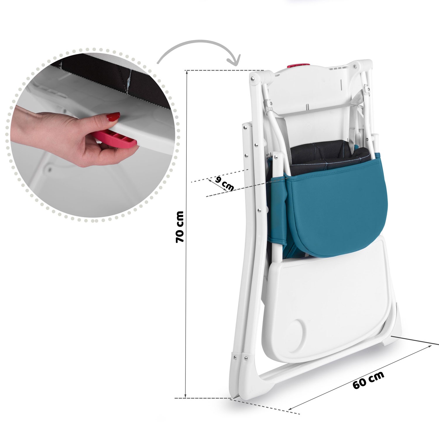 Підняті краї підноса запобігають зісковзуванню їжі або напоїв. До таці додається фігурний підсклянник. Стілець для будь-якого інтер'єру. Стілець складається до компактного розміру одним натисканням кнопки!