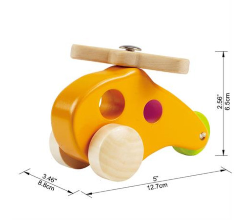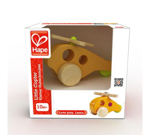Дерев'яний вертоліт Hape Маленький льотчик підходить для дітей від 10 місяців і старше. У іграшки проста конструкція і безпечне покриття. Виготовлений із клена. Розміри: 12,7 х 8,8 х 6,6 см. Іграшковий вертоліт відповідає міжнародним стандартам якості EN 71 і ASTM F963.