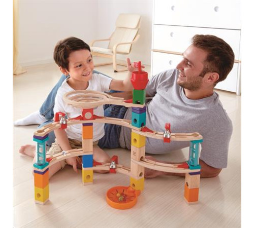 Конструктор-лабіринт Hape Quadrilla Втеча з замку складається зі 102 деталей і стане в пригоді дітям від 4 років.