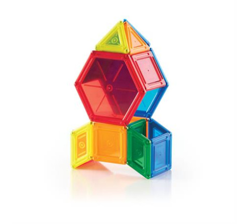 Магнітна іграшка-конструктор із легкою системою з'єднування елементів. Шість унікальних форм деталей дають необмежені можливості для конструювання. Магніти в конструкторі не відштовхуються, що дозволяє легко створювати двовимірні та тривимірні моделі. Конструктор сприяє розумінню ролі маси та об'єму в моделюванні об'єктів. Деталі виконані із напівпрозорого ударостійкого пластику з неодимовими магнітами. У комплекті кольоровий посібник зі збирання із прикладами готових фігур для творчого натхнення дитини. Іграшка розвиває просторове мислення, дає уявлення про стереометрію, масу тіла та об’єм. Вік: від 3 років.
