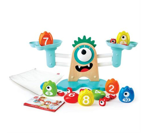 Навчальні ваги Hape Монстроматематика здивують навіть дорослих, а сучасний дизайн потішить дітей. Помістіть довільну кількість великих гирьок-монстрів на один бік терезів і попросіть дитину підрахувати, скільки менших гирьок потрібно, аби врівноважити їх. Іграшка ознайомить дітей з вагою, вимірами та балансом.