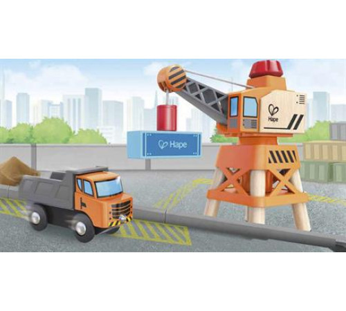 Набір для іграшкової залізниці Hape Підйомний кран та вантажівка (E3715)