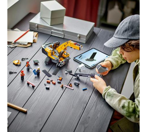 Здивуйте свого юного конструктора іграшковим жовтим будівельним екскаватором (60420) для дітей віком від 8 років. Цей реалістичний іграшковий екскаватор схожий на справжній, із гусеницями, що захоплюють землю, універсальною стрілою й кабіною водія, яка обертається на 360°. Набір також включає два загороджувальні барʼєри й містить мініфігурки водія, робітника й архітектора для творчих сюжетних ігор і розповідей.