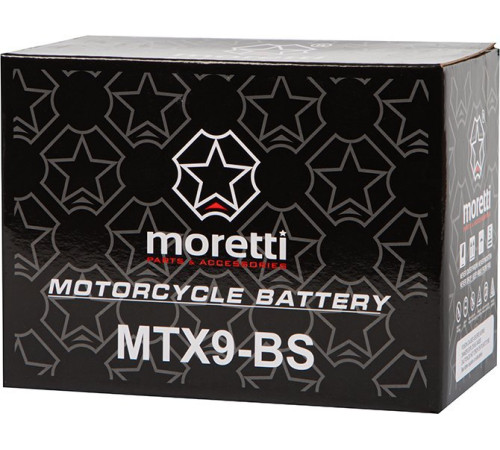 Гелевий акумулятор Moretti виготовлений за технологією AGM (Absorbent Glass Mat). Висока якість свинцевих пластин і електроліту забезпечує надійне живлення для більшості систем підтримки напруги, таких як ДБЖ або системи аварійного електропостачання.