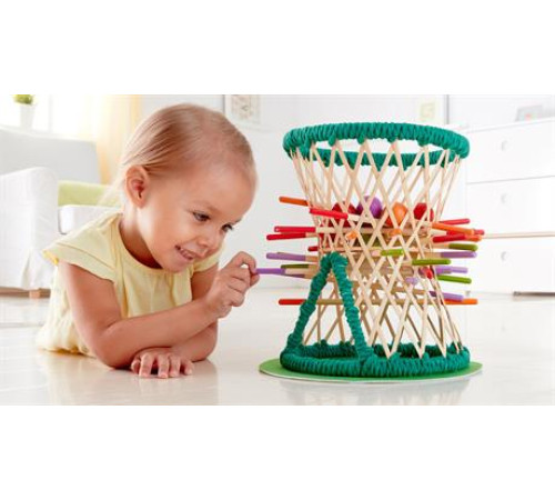 Головоломка Hape Pallina з кульками виготовлена з бамбука і зацікавлює своєю незвичною формою й безліччю ігрових елементів. Гра з головоломкою передбачає кілька варіантів. Молодші діти можуть закидати кульки в кошик, а старші – спробувати витягнути палички, аби кульки не повипадали. Виграє той, хто витягне всі свої палички.