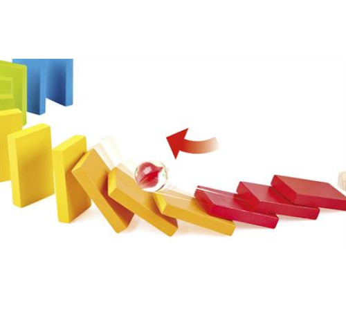 На старт! Увага! Руш! Запускайте мармурові кульки по зібраному треку. Хто ж першим зіб'є доміно? Захоплива перегонова траса від Hape складається з 81 елемента. Іграшка буде цікава дітям від 3 років. Набір сумісний з іншими наборами серії.