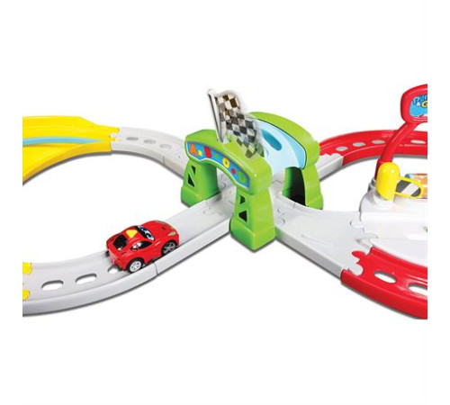 Набір збирається у яскраву трасу у вигляді вісімки. При натисканні кнопки на даху кабіни чути звук двигуна. Можна змінити напрямок та час руху. Інтерактивні елементи роблять гру ще цікавіше!