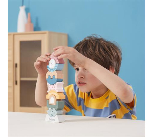 Дерев'яна пірамідка-балансир PolarB Башточка – це сучасна екологічна версія дитячої розвивальної іграшки у стриманих тонах. Складається з 11 великих деталей різних форм, які з'єднуються, наче пазли. Вони виконані в пастельних кольорах, деякі незабарвлені.
