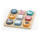 Малюк буде складати картинку з двох блоків за кольором і поміщати отриману фігурку у відповідний отвір на підставці. Усього йому необхідно зібрати та розсортувати 9 міні-пазлів.