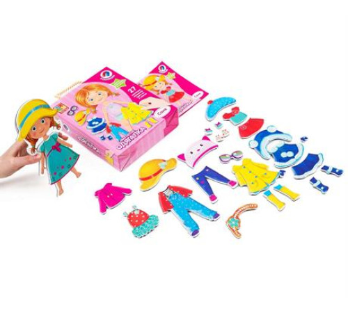 Набір містить: 27 магнітних елементів одягу, ляльку, журнал завдань.