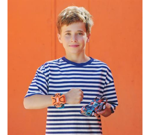 Автомодель Nikko Wrist racers Graphic red – це справжні пригоди. Обертайте зап’ястя ліворуч і праворуч, щоб керувати кермом, і натискайте кнопки, щоб керувати вперед і назад. З контролем на зап’ясті ви будете готові брати участь у перегонах будь-де та будь-коли!