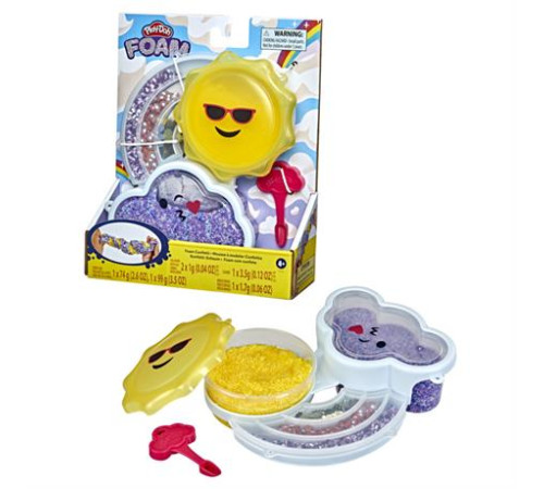 Додайте трохи сонячного світла із набором для ліплення Play-Doh Foam Confetti! Ця ароматизована піна для ігор включає матеріали в сонячно-жовтому кольорі із запахом лимона та темно-сірих кольорах із запахом цукрового печива. Захоплююче заняття для дітей включає райдужні підвіски, намистини, а також форми сонця та хмар з фольги. Цей набір для ліплення стане чудовим подарунком та захоплюючою грою для дітей від 4 років і старше!