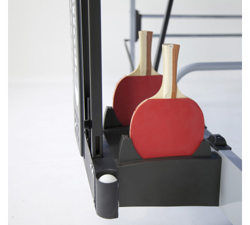 - Зручність у користуванні - тенісний стіл обладнаний тримачами для тенісних ракеток та м'ячів з обох сторін стола.