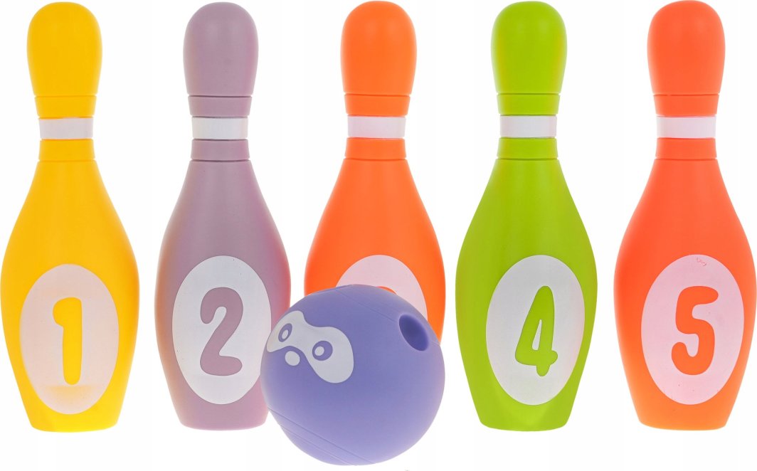 Кеглі для боулінгу вирізняються спокійними пастельними кольорами, які підходять для найменших. Крім того, на кожній кеглі зображено цифру від 1 до 5, що дозволяє малюкам вивчати основи лічби у дуже привабливий спосіб.