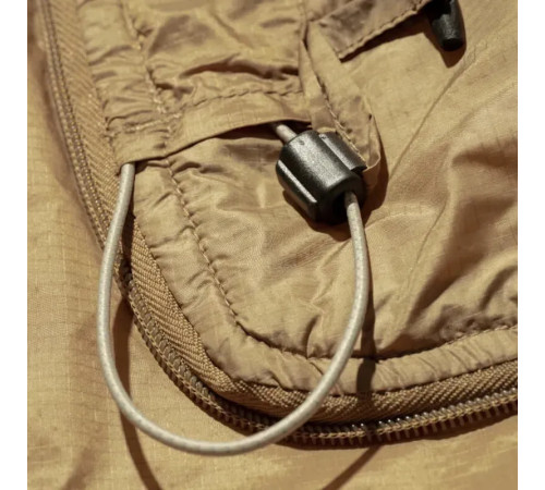 Спальний мішок оснащений регульованим капюшоном, який забезпечує додатковий захист від вітру та холоду, а також може бути компактно складений для зручності транспортування. Практична кишеня на грудях на блискавці робить доступ до особистих речей швидким та зручним.