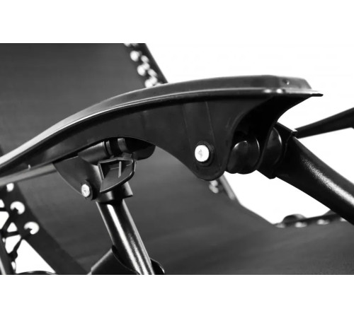Каркас шезлонга виконаний з металу з чорним епоксидним покриттям, що добре захищає його від іржі та подряпин.Шезлонг ідеально підходить для використання на відкритому повітрі в весняно-літній сезон. Сидіння виготовлено з текстилю, який надзвичайно стійкий до води, погодних умов і бруду.