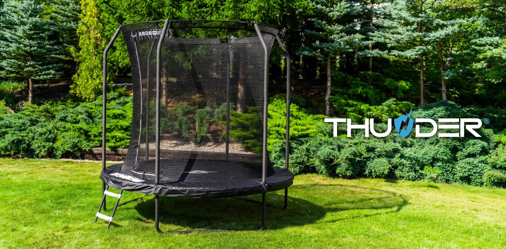 Масивне плетіння батута THUNDER гарантує тривале використання. Завдяки шестикратному прошиванню по всьому периметру, пружинні тримачі забезпечують стійкість до найвищих навантажень, що призводить до безпеки користувачів. Стійкість до ультрафіолетового випромінювання також гарантує збереження інтенсивності кольорів та естетичного вигляду протягом багатьох років.