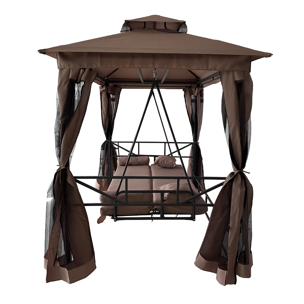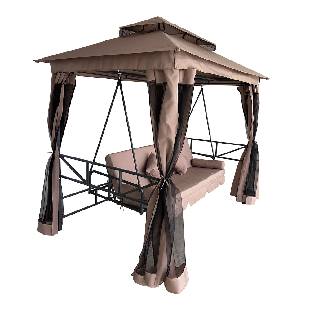 Гойдалка садова Bonro B-002 з москітною сіткою, 233 х 164 х 240 см - коричнева
