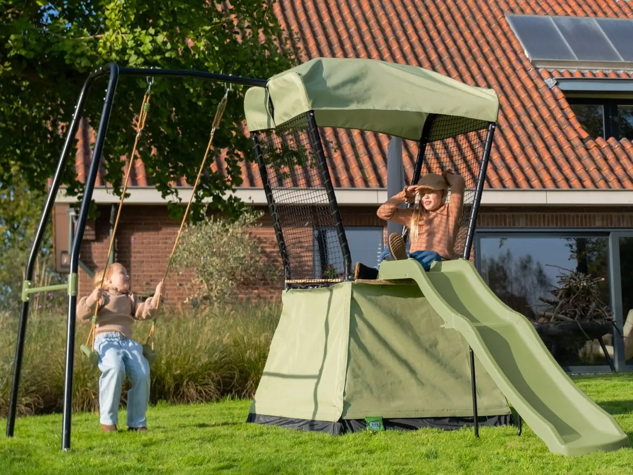 Ігровий майданчик EXIT Ivy з гіркою та гойдалкою 253 х 268 х 216 см - зелений