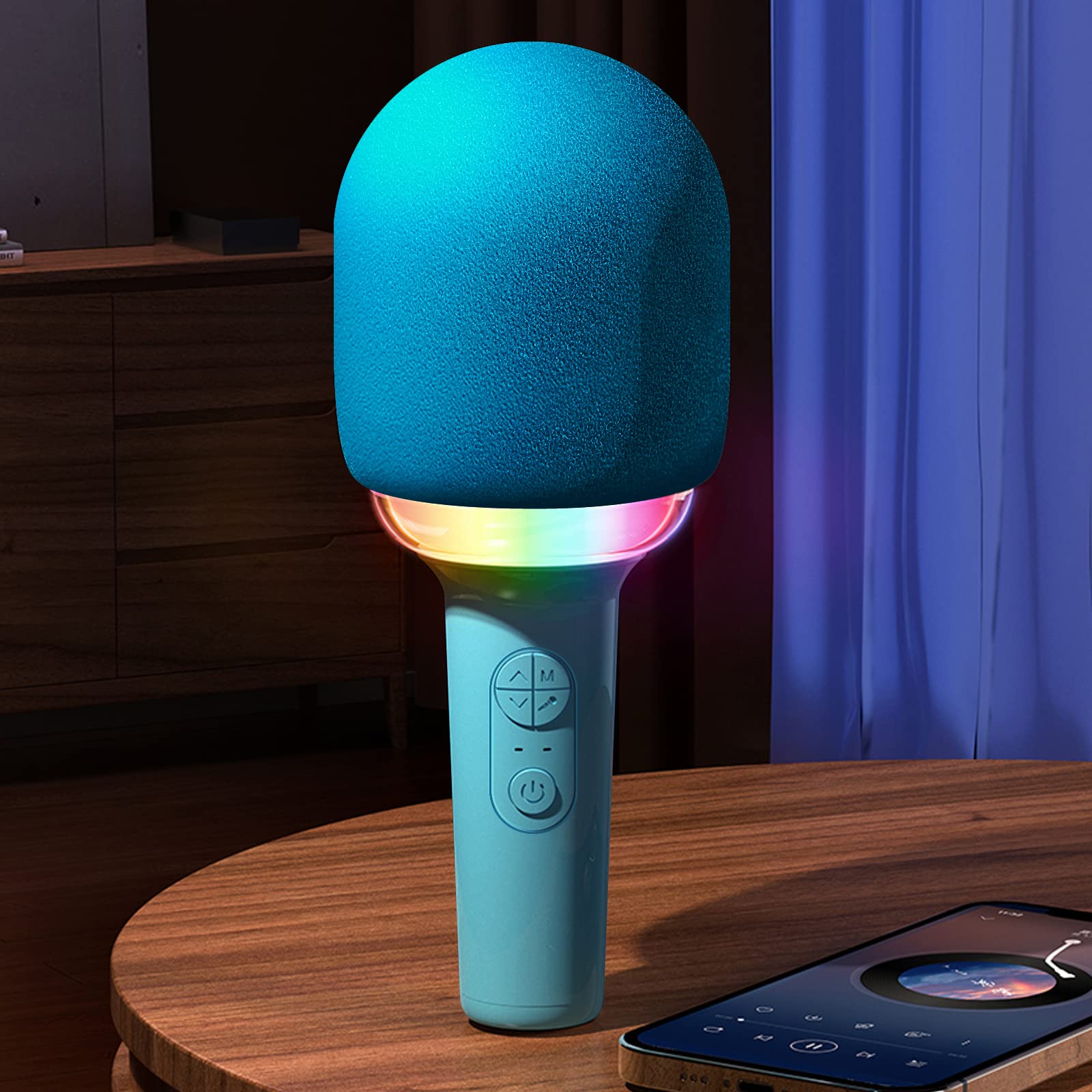 Караоке мікрофон PlaySound - співайте та розважайтесь. Цей дитячий мікрофон не лише дозволяє співати, але й змінювати голос на мультяшний за допомогою кнопки 'М'. RGB-підсвітка створює додатковий ефект, перемикаючись у ритм з музикою або голосом.
