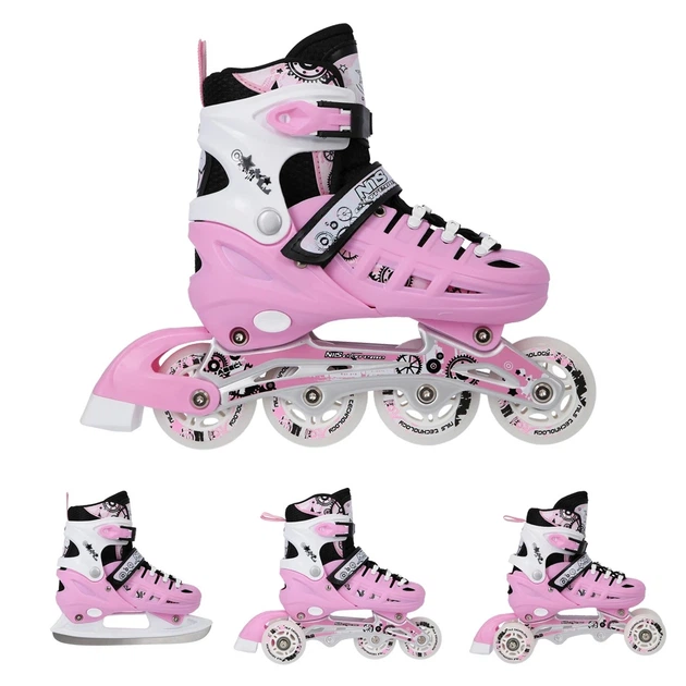 У роликовій конфігурації NH10905 дарують справжню радість від катання. Перенесення додаткового колеса на задню вісь перетворює їх на триколісні ковзани, що допомагає наймолодшим спортсменам зробити перші кроки у ролер-спорті. Встановлення колеса на передню вісь перетворює модель на класичні ролики. Вони оснащені міцною алюмінієвою рамою та гальмом, що забезпечує безпеку, а колеса й підшипники класу ABEC7 зменшують опір коченню та дозволяють кататися швидше й плавніше.