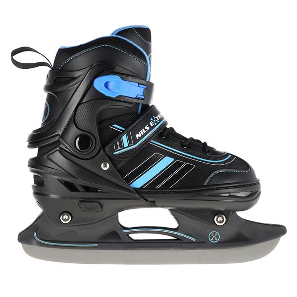 Ковзани NH18191 Nils Extreme характеризуються дуже хорошими ходовими якостями. Це заслуга полозів, виготовлених з високоякісної нержавіючої сталі, та багатозатискної системи кріплень, що складається з ремінця на липучці, затискача та шнурків, які надійно фіксують стопи. Все це робить цю модель хорошою в будь-яких умовах, забезпечуючи незабутні враження від катання. Це зручні хокейні ковзани, розроблені для початківців і користувачів середнього рівня. Їх висока якість гарантує довговічність і стійкість до механічних пошкоджень.