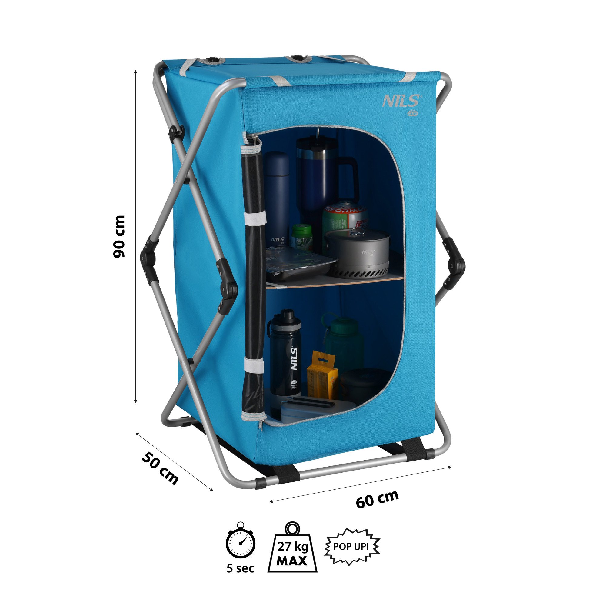 Шафа для кемпінгу NILS CAMP NC3702 – це функціональна і надзвичайно швидка в розкладанні туристична шафа, створена для користувачів, які цінують порядок і мобільність в умовах кемпінгу. Вона ідеально підійде для кемпінгу, під наметом, на ділянці, а також під час тривалих подорожей на кемпері або фестивалях.