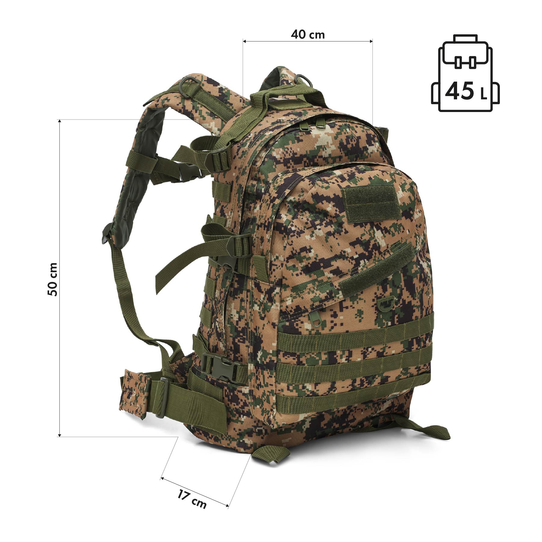 Рюкзак NILS CAMP NC3904 Vanguard – це військовий рюкзак місткістю 45 літрів, розроблений для користувачів, які цінують функціональність, легкість і сучасний тактичний вигляд. Ідеально підходить для одноденних походів, вилазок на виживання, а також як міський рюкзак або EDC (Everyday Carry) – тобто щоденний рюкзак для необхідних речей, які ви хочете завжди мати при собі. Компактні розміри в поєднанні з продуманою конструкцією роблять його ідеальним вибором для щоденного використання та походів на природу.