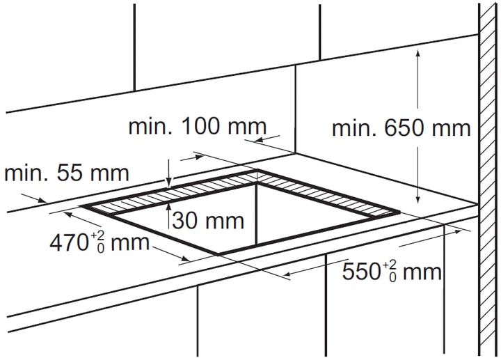- Розміри ніші для вбудовування: 3 х 55 х 47 см