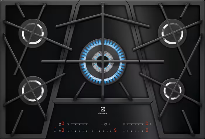 Варильна поверхня газова ELECTROLUX KGV7539IK. Виготовлення кулінарних шедеврів потребує точності. Елементи управління надають потужність газу всього у декілька натиснень без жодних кнопок чи ручок. Все необхідне для повної точності вбудовано безпосередньо у гладеньку та безпечну поверхню. Одним дотиком можна взяти під контроль процес готування.