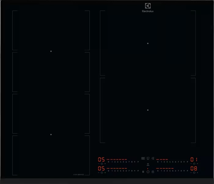 Варильна поверхня індукційна ELECTROLUX EIV64453. Flex Bridge адаптується до посуду будь-якого розміру. Функція Flex Bridge індукційної варильної панелі робить готування більш зручним. Три схеми готування забезпечують гнучкість при одночасному розміщенні кількох каструль і сковорідок. Можна обрати дві зони нагрівання середнього розміру, маленьку та велику зони або одну надзвичайно велику для планча.
