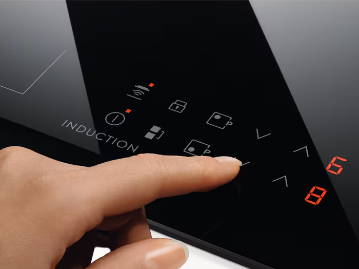 З сенсорними елементами управління індукційної панелі не потрібно встановлювати налаштування навмання. Достатньо торкнутися сенсорної скляної поверхні, щоб легко збільшувати або зменшувати температуру. Завдяки відсутності кнопок та ручок, що виступають, поверхню легко чистити.