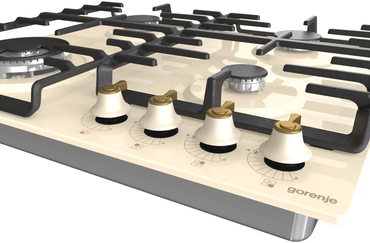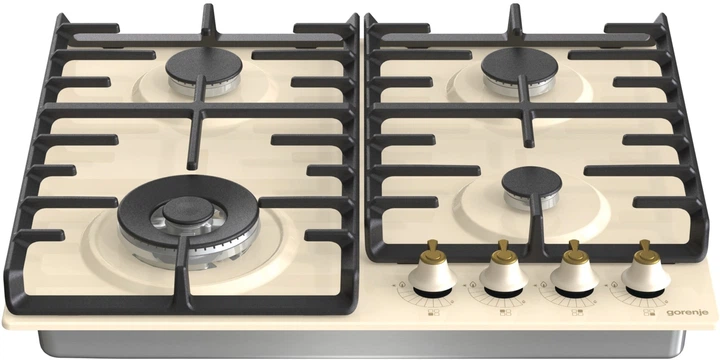 Варильна поверхня газова GORENJE GW 642 CLB обладнана газовими конфорками з електрозапалюванням. Поворот ручки висікає іскру і полумʼя загоряється автоматично. Виробник для безпечної експлуатації оснастив конфорки системою контролю витоку газу - при згасанні вогню газ на пальник не подається.