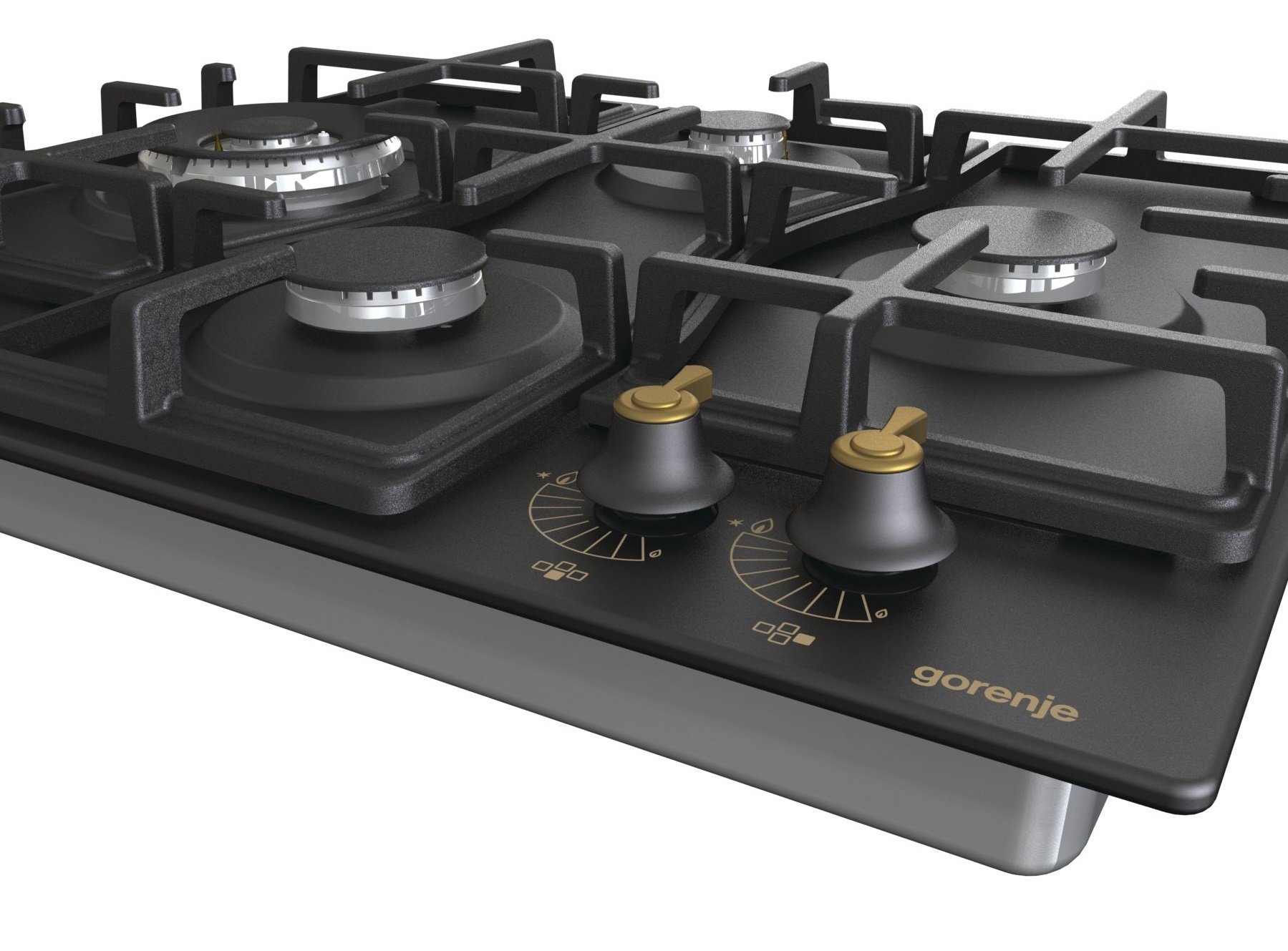 Чавунні решітки підвищують стійкість і покращують зовнішній вигляд газової варильної поверхні. Завдяки матеріалу, з якого вони виготовлені, ці решітки можуть витримувати високі температури та використовуватися надзвичайно довго. Особливе ромбовидне розташування конфорок забезпечує зручний огляд та контроль над приготуванням. Два великі, потужні пальники, розташовані ліворуч і праворуч, дозволяють готувати в посуді великого діаметру та воку. Дизайн чавунних решіток повторює розташування конфорок і гармонійно завершує загальний вигляд варильної панелі. Можливість запалювати конфорку однією рукою — це ще одна функція, яка підвищує комфортність користування та полегшує керування. Щоб запалити газову конфорку, просто натисніть регулятор і поверніть його на необхідний рівень однією рукою — ваша інша рука повністю вільна. Це швидко та просто!