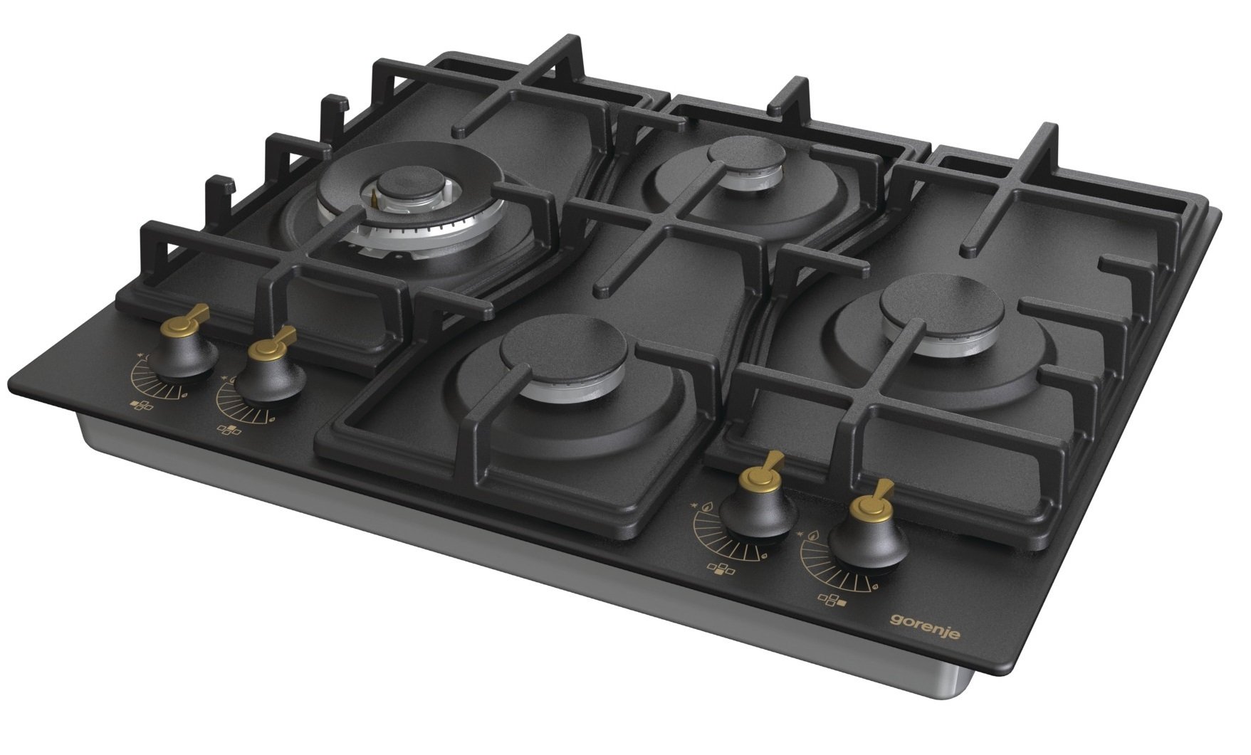 Варильна поверхня газова GORENJE GW 6D42 CLB обладнана газовими конфорками з електрозапалюванням. Поворот ручки висікає іскру і полум'я загоряється автоматично. Виробник для безпечної експлуатації оснастив конфорки системою контролю витоку газу – при згасанні вогню газ на пальник не подається. Для приготування в посуді великого діаметру передбачено пальник збільшеної потужності WOK. Ручки перемикачі розташовані у правій передній частині панелі. Щільне примикання грат одна до одної дозволяє легко пересувати важкий посуд з однієї конфорки на іншу.