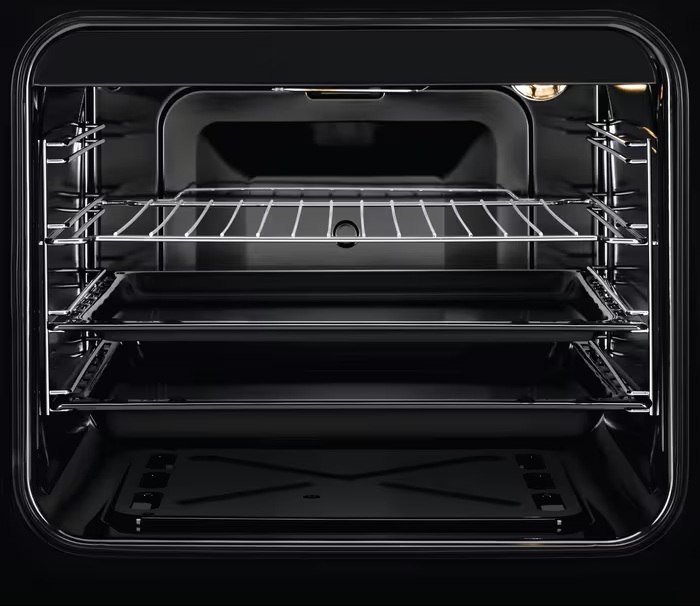 Внутрішня поверхня духовки виконана з чорної емалі – міцного та стійкого до забруднень матеріалу, що значно спрощує догляд і підтримання чистоти.