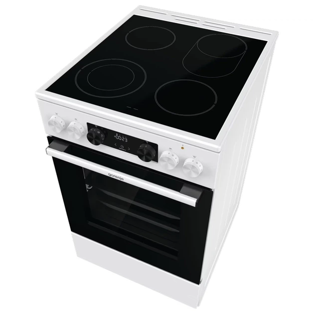Плита електрична GORENJE GECS 5C70 WA. Духові плити Gorenje відомі своєю заокругленою формою камери HomeMade, натхненною традиційними дров’яними печами, яка забезпечує кращу циркуляцію повітря. Форма HomeMade була повністю оновлена, а потік повітря вдосконалений завдяки новій конструкції нагрівача та покращеному розподілу вентиляційних отворів. Завдяки цьому температура залишається стабільною по всьому об’єму печі. Страви рівномірно пропікаються без підгоряння з одного боку та недосмаження з іншого.