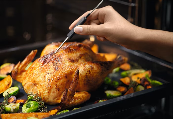 Термощуп дозволяє досягати ідеальних результатів, відстежуючи температуру всередині продукту. Після досягнення потрібного рівня температура повідомляє про готовність страви та припиняє приготування.