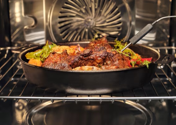Термощуп забезпечує стабільний результат, безперервно вимірюючи температуру всередині страви. Коли температура досягає заданого рівня, духова шафа повідомляє про це та автоматично припиняє готування.