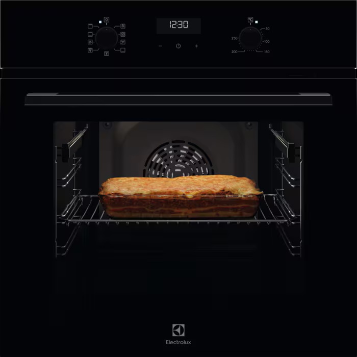 У Духовій шафі електричній ELECTROLUX EOF5C50BZ все буде приготовлено рівномірно – від смаженої курки з хрусткою скоринкою до делікатних безе. Духова шафа забезпечує постійну внутрішню температуру в усій камері, оскільки вентилятор циркулює повітря та тепло. Не потрібно перевертати страви або регулювати деко.